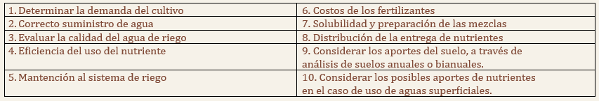 Las principales consideraciones para determinar la mejor estrategia de riego deben ser: