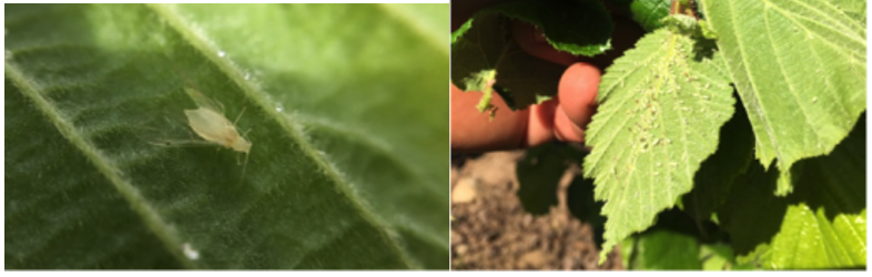 Izquierda: Presencia de pulgón en hojas